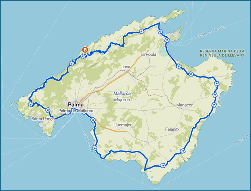 So, what is the difference between the modern Mallorca 312 and the Original 312? Well, before 2016, the route was a circuit of the whole island. Nowadays it still follows the same wonderful Ma-10 north coast road from Pollença to Andratx, but instead of continuing through Palma and heading down to the south coast, it cuts back inland and stays close to the mountains in an easterly direction before heading south to Arta and then back to Playa de Muro.