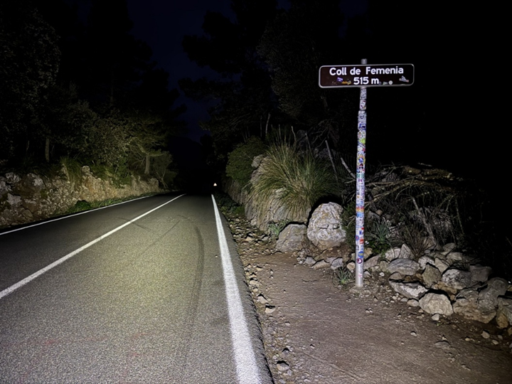 Initially I felt good, I was spinning nicely, and the climb was going well. It still took a while because I reached the summit of the Col de Femenia in the dark at about 7:25 pm.