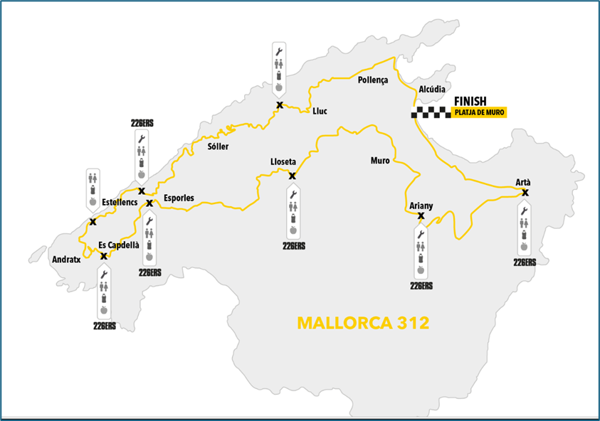 Many of you will have heard of the iconic Mallorca 312. For those that haven’t, the Mallorca 312 is one of Europe’s most famous cycling events, held annually in late April, starting and finishing at Playa de Muro. It is a closed road sportive/race which covers 312 kilometers through the stunning landscapes of the Serra de Tramuntana mountains, featuring over 5,000 meters of climbing. The event attracts around 8,000 riders each year, making it a significant challenge for both experienced cyclists and amateur enthusiasts. It is a very serious challenge; there is a cut-off time of about 14 hours. If a rider doesn’t finish in 14 hours or doesn’t get to any of the pre-determined cut-off locations, then they are eliminated.