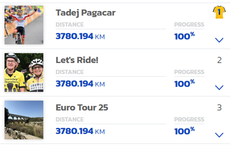 I’ve heard from many of you that the challenge has been motivating, helping you feel fitter, stronger, and ready to enjoy the recent sunshine. The virtual nature means I don’t get to see the moments when the last thing you want to do is stare at the garage wall again or head out into the cold and wet — but you still do it, whether to climb above a rival on the leader board or push your team past the next marker. You know who you are.