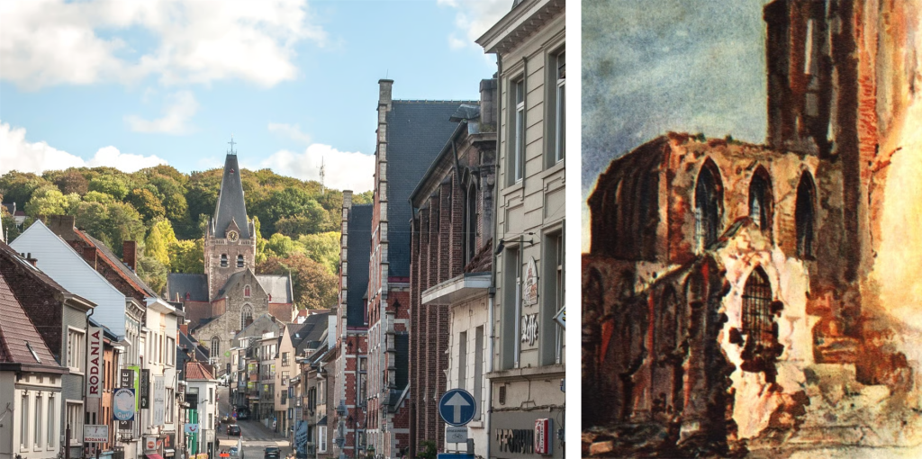 Mesen (Messines) is officially the smallest city in Belgium. Early in the war, between December 1914 and February 1915 a young German soldier, with minor injuries, was cared for at Bethleem Farm. During his rehabilitation he made various watercolours, including one of the destroyed church of St. Nicholas. The artist? Adolf Hitler.